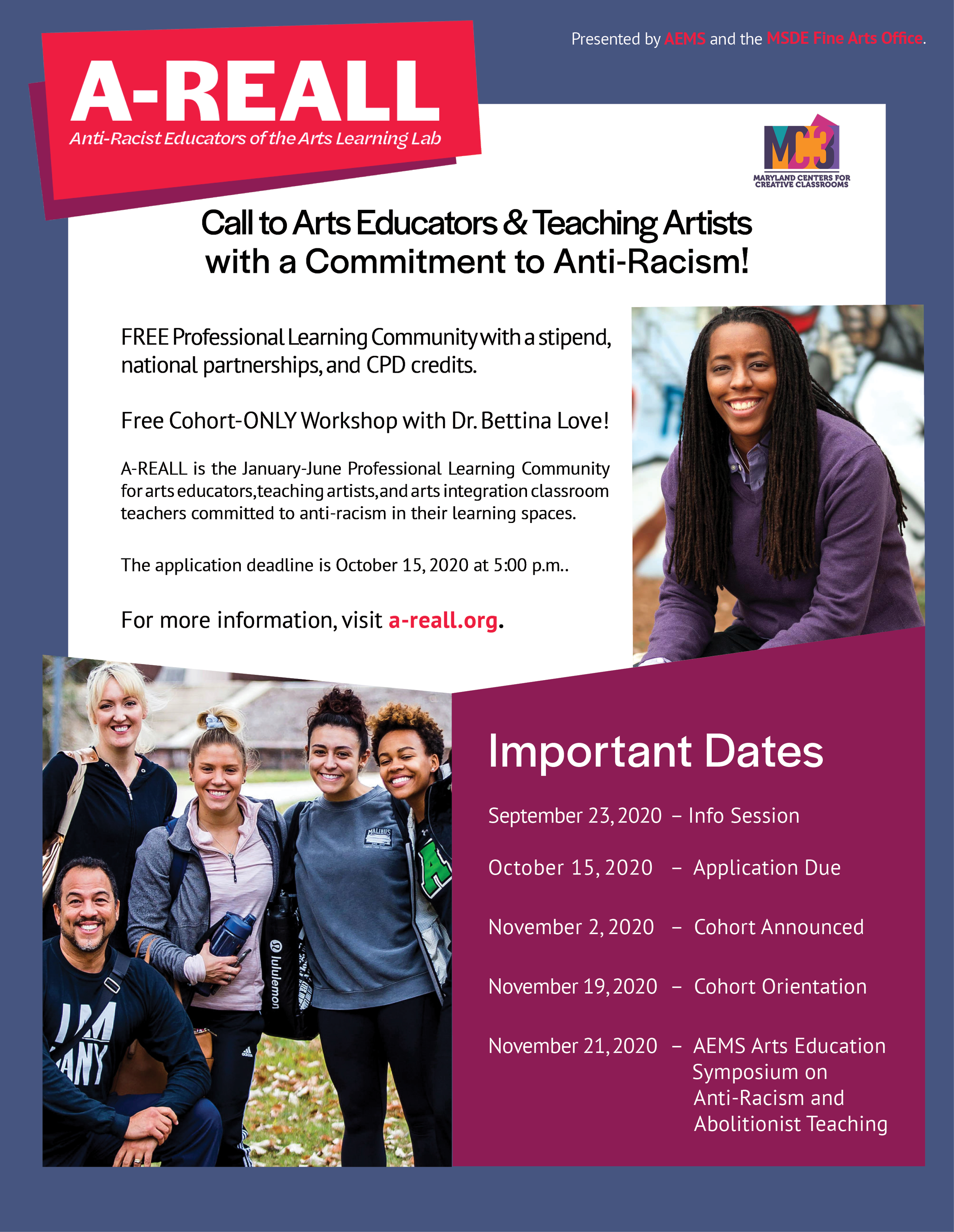AEMS and MSDE seek a paid artist facilitator to walk a cohort of arts educators through an anti-racist journey.